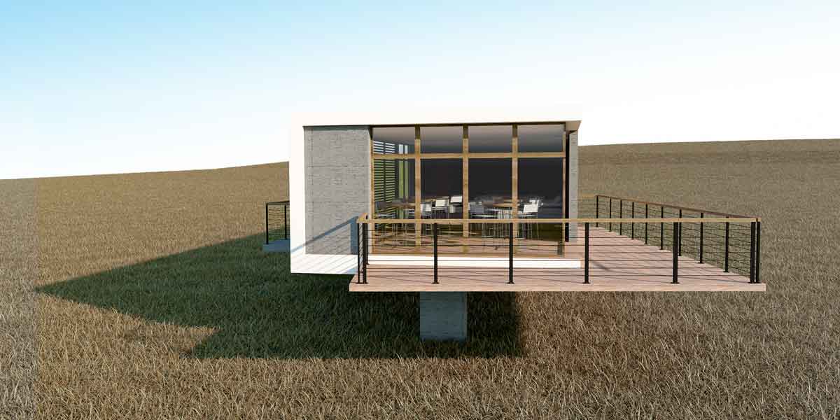 El partido arquitectónico se basó en la implantación de un volumen palafitico sobre bases de hormigón que permiten un bajo impacto en la superficie natural del terreno, dicho volumen tiene características morfológicas contemporáneas generando un contraste entre el paisaje natural y lo edificado.